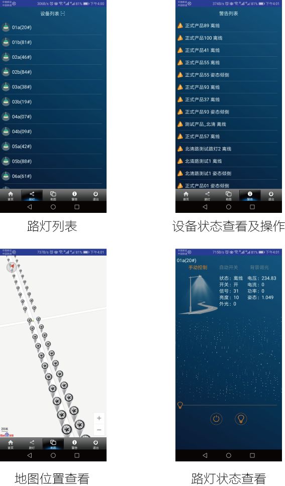 为方便管理员对路灯实时进行监控和管理,星空xingkong电竞物联开发了智慧路灯监控系统app,移动端操控更加简便,带给客户更好的用户体验。